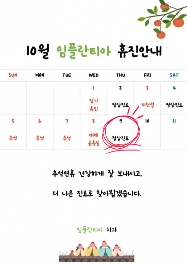 안녕하세요 치아살리는 임플란티아치과입니다 2025년 추석 명절 연휴로 휴진 안내드립니다 저…